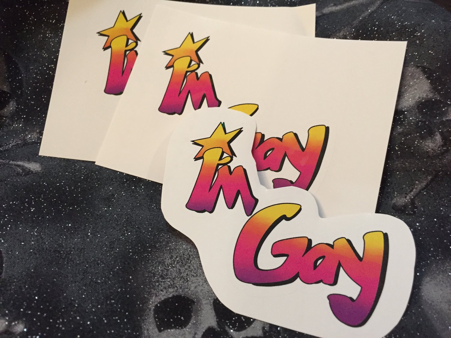 I'm gay! In the Jem and the Holograms font! And also in real life! These stickers are kiss-cut, meaning the sticker itself is cut close to the edge of the image itself with a thin, white border.